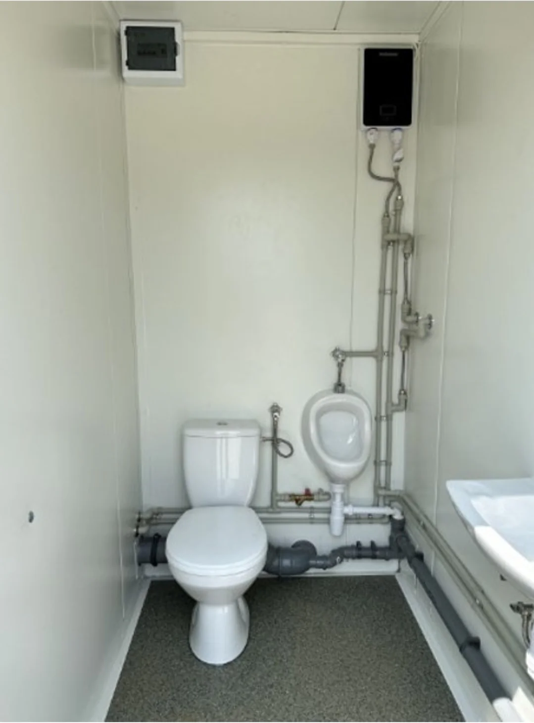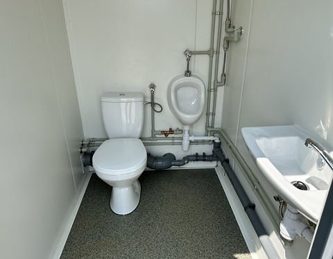 Contenedor Sanitario 3 Cabinas (WC, Urinario + Caldera, Ducha)