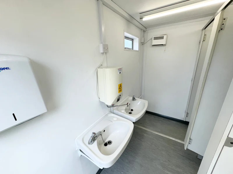 Edificio portátil de 13 x 9 pies con 2 + 1 aseos antivandálicos